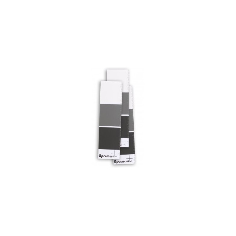 QPcard 101 is a neutral reference card perfect for gray or white balancing. It has three patches, white (Lab 95*0*0), mid gray (48*0*0) and dark gray (35*0*0).